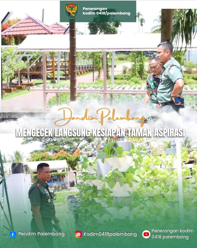 > “Kita pastikan seluruh sarana dan fasilitas di Taman Aspirasi siap digunakan. Penataan taman ini juga merupakan bentuk kepedulian terhadap lingkungan dan kenyamanan satuan,” ujar Dandim 0418/Palembang Letkol Arh Erik Novianto, S.Sos.