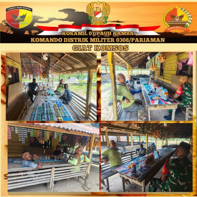 Babinsa Sertu Deni Frizalman menjelaskan, kegiatan komsos ini dilakukan karena sudah menjadi tugas pokok sebagai seorang Babinsa yang senantiasa melaksanakan Komsos untuk mencari informasi dan sebagai sarana bersilaturahmi kepada warga supaya lebih dekat dan bisa menjalin kebersamaan.