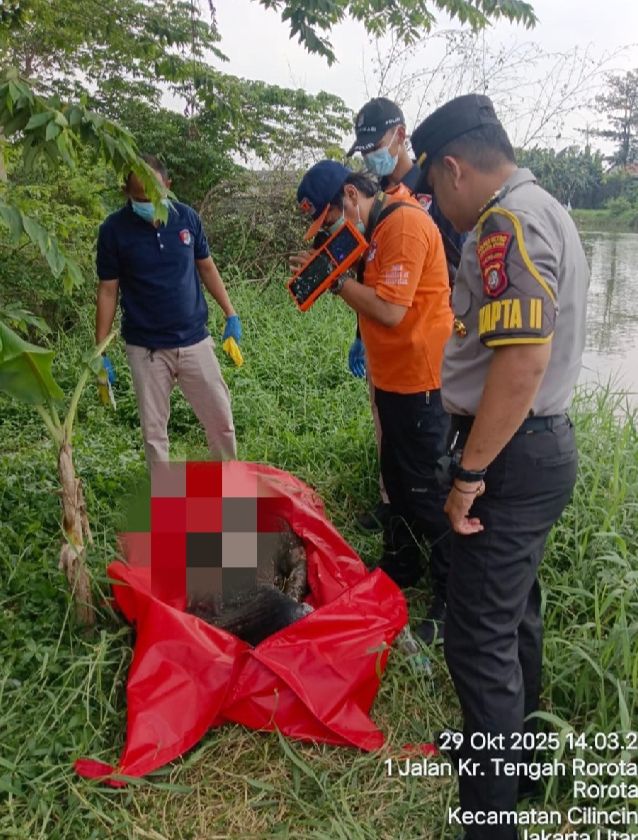 Jakarta Utara, AgaraNews .com // Sesosok mayat pria tanpa identitas ditemukan mengambang di aliran Kali Banjir Kanal Timur (BKT), Jalan Inspeksi Kali BKT RW 09, Kelurahan Rorotan, Kecamatan Cilincing,Jakarta Utara, Rabu (29/10/2025) sekira pukul 08.45 WIB.