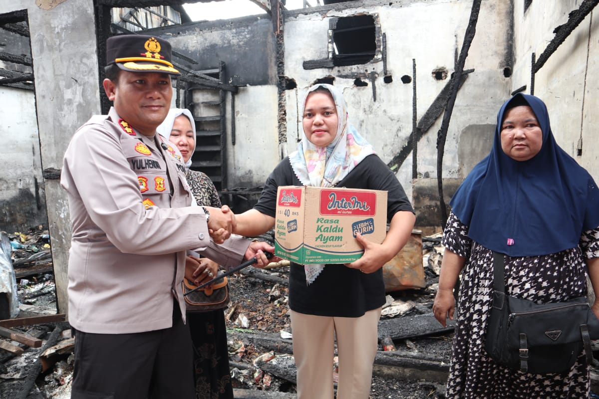Selain menyerahkan bantuan, Kapolres bersama Dandim dan jajaran juga meninjau langsung kondisi lokasi kebakaran serta berbincang dengan warga untuk memastikan situasi telah terkendali dan kebutuhan dasar korban dapat terpenuhi.