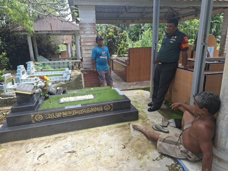 Kemudian, Babinsa menyampaikan agar selalu bersyukur dalam segala hal, termasuk sebagai penjaga makam dan penggali kuburan merupakan pekerjaan yang mulia.