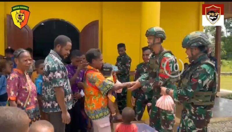 Maybrat, AgaraNews .com // Pos Bori Satgas Yonif 763/SBA melaksanakan kegiatan pembagian sembako kepada masyarakat Kampung Bori. Kegiatan ini dilaksanakan setelah pelaksanaan ibadah hari Minggu di Gereja Santa Monica Bori di Kampung Bori Distrik Aifat Kabupaten Maybrat. (29/10/2025).