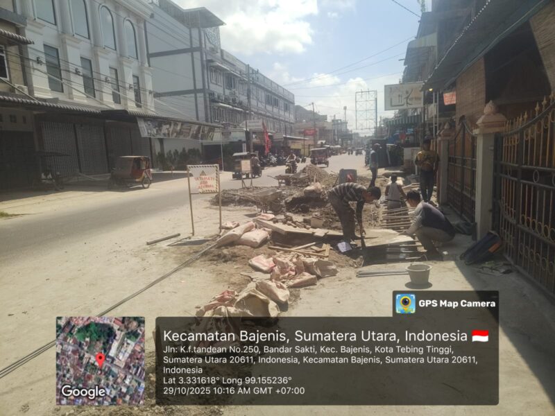 Tebingtinggi,Agaranews.com // Material proyek Drainase yang berlokasi di Jalan K.F Tandean Kelurahan Bandar Sakti Kecamatan Bajenis Kota Tebingtinggi – Sumut ini, terpantau media “Berserak” dan terletak di Bandan Jalan. Hal ini didapat awak media ini ada Rabu (29/10/2025) sekira pukul 11.00 WIB saat melintasi Jalan K.F Tandean Kota Tebingtinggi.