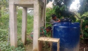 Dalam kegiatan tersebut, Babinsa bersama warga bergotong royong memperbaiki dan membersihkan bak penampungan air yang menjadi sumber kebutuhan air bersih bagi masyarakat setempat. Pekerjaan meliputi perbaikan pondasi, pembersihan saluran air, hingga perawatan bak penampungan agar aliran air tetap lancar dan layak digunakan.