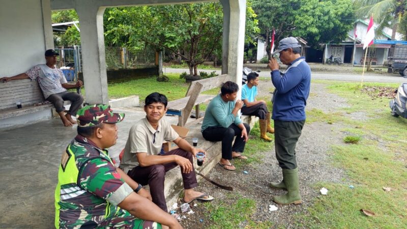 Nagan Raya,Agaranews.com –  Babinsa Posramil Kuala Pesisir Kodim 0116/Nara Kopka Zulkarnain melaksanakan kegiatan komunikasi sosial (Komsos) dengan masyarakat binaannya di desa Kuala Trang Kecamatan Kuala Pesisir, Senin (03/11/2025).
