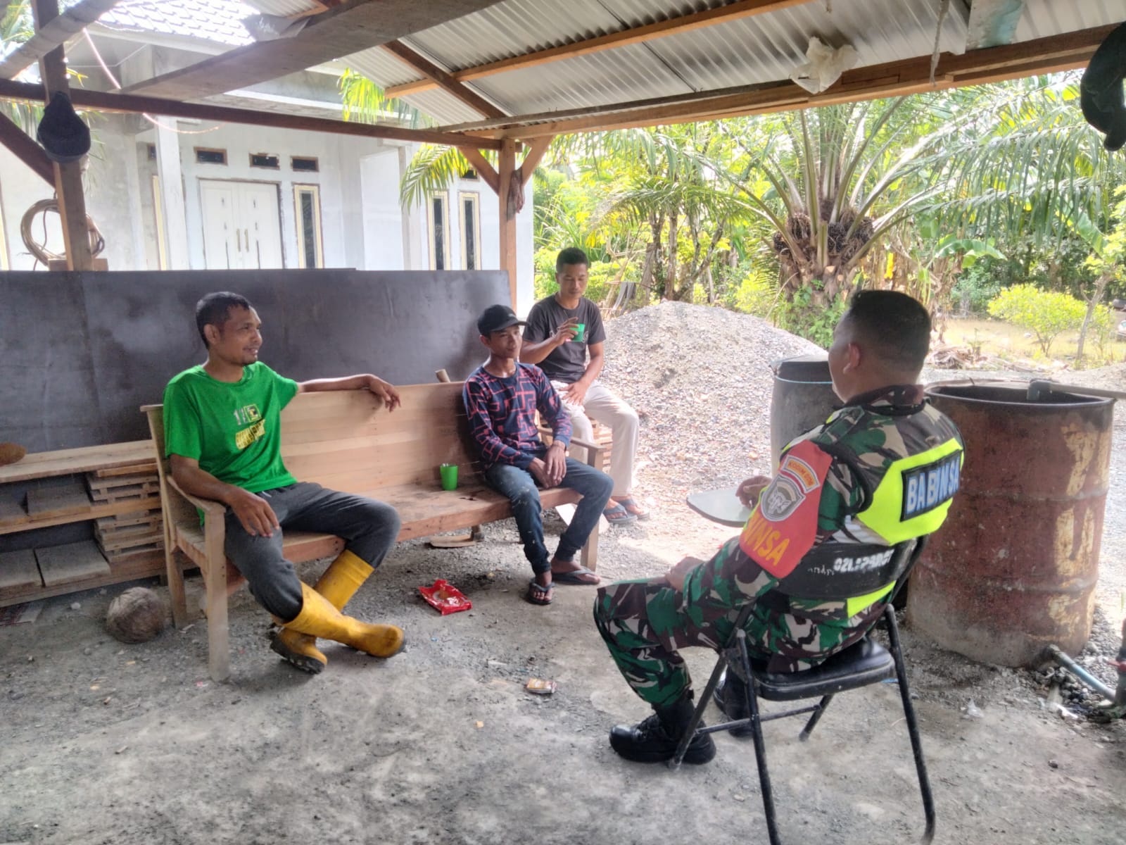 Melaksanakan pembinaan komunikasi sosial (Komsos) menjalin keakraban dengan warga binaan merupakan tugas pokok Babinsa. Salah satunya dengan melakukan komunikasi sosial dalam menciptakan interaksi serta kekompakan antara Babinsa dan warga binaannya,Dalam kegiatan Komsosnya ia mengatakan kegiatan ini untuk mencerminkan rasa kemanunggalan TNI khususnya Babinsa kepada masyarakat wilayah binaannya.