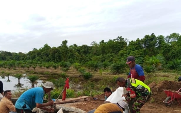 Babinsa Jajaran Kodim 0108/Agara Kebut Pengecoran Tiang Pondasi Jembatan Gantung Garuda