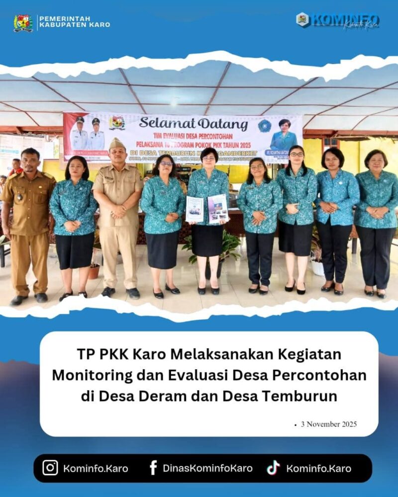Tanah Karo, AgaraNews.com //.Tim Penggerak Pemberdayaan dan Kesejahteraan Keluarga (TP PKK) Kabupaten Karo melaksanakan kegiatan Monitoring dan Evaluasi (Monev) Lomba Desa Percontohan Pelaksana 10 Program Pokok PKK Tahun 2025 di Desa Deram dan Desa Temburun, Senin (3/11/2025).