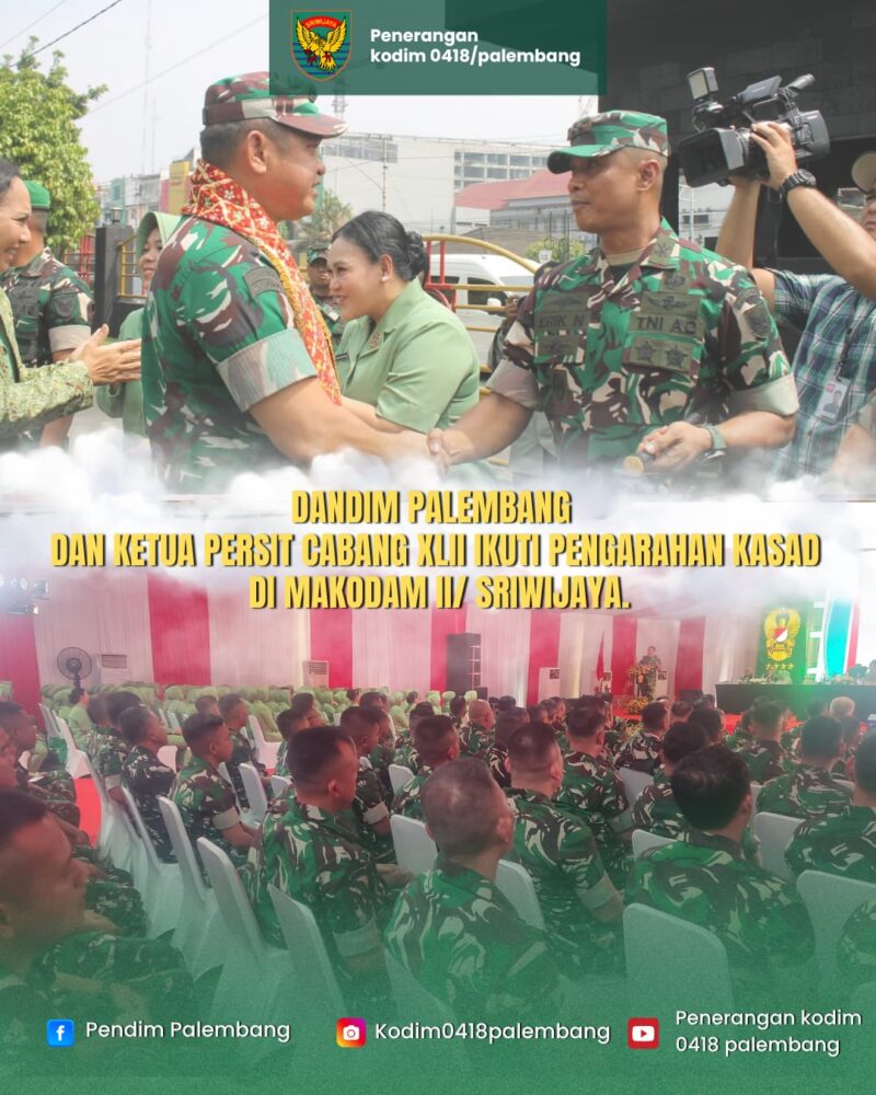 Palembang, AgaraNews.com // Kepala Staf Angkatan Darat (Kasad) Jenderal TNI Maruli Simanjuntak, M.Sc., menegaskan bahwa seorang prajurit tidak boleh berkhianat terhadap sumpahnya sebagai tentara. Penegasan tersebut disampaikan Kasad saat memberikan pengarahan kepada prajurit, PNS, dan anggota Persit Kartika Chandra Kirana (KCK) dalam kunjungan kerjanya di Makodam II/Sriwijaya, Palembang, Rabu (5/11/2025).