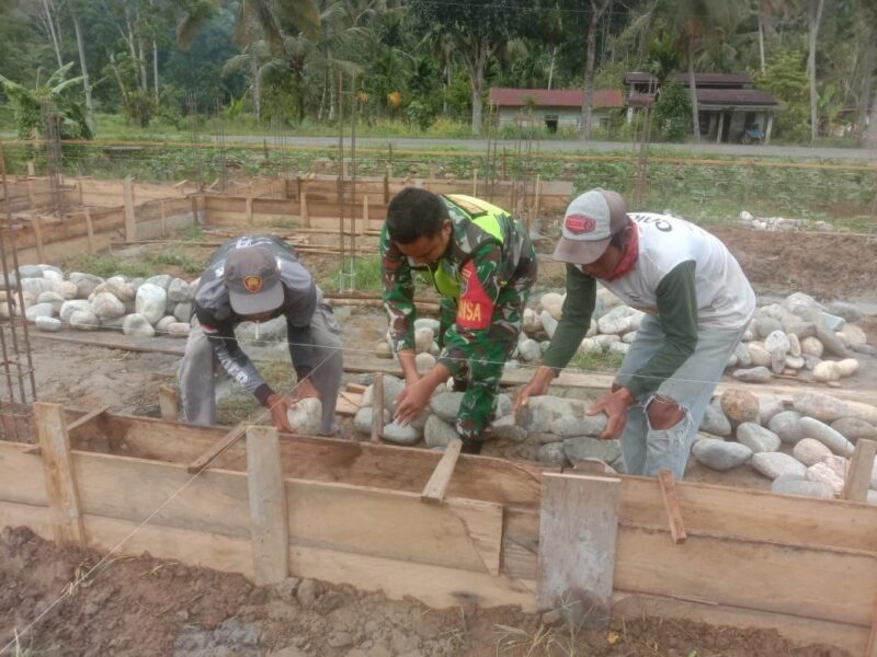 Wujudkan Kemanunggalan TNI Bersama Rakyat, Babinsa Posramil Ketambe Bantu Masyarakat Desa Binaan Bagun Pondasi Rumah