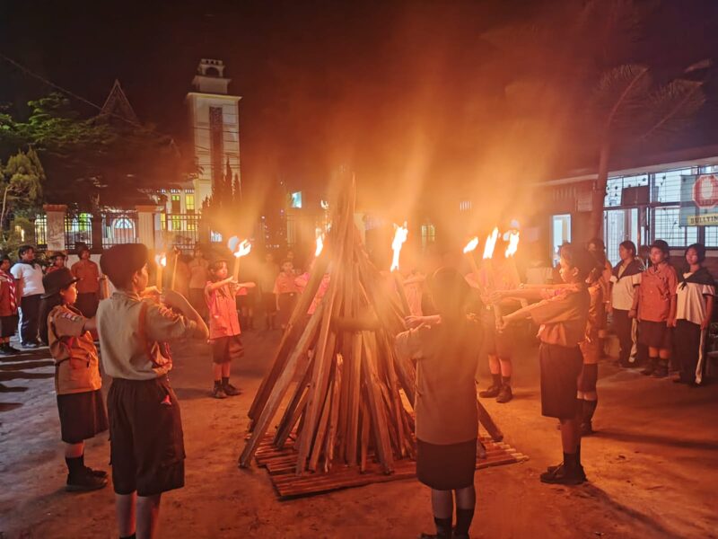 Tanah Karo – 15 November 2025, AgaraNews.com // SMP Maria Goretti Kaban Jahe melaksanakan malam api unggun sebagai tanda kebersamaan dan kekeluargaan dalam acara pengukuhan gabungan Pramuka dan Paskibra. Acara ini diadakan di lapangan SMP Maria Goretti Kaban Jahe pada Sabtu malam, 15 November 2025.