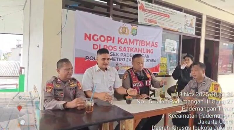 Jakarta Utara, AgaraNews .com //.Polsek Pademangan menggelar kegiatan Ngopi Kamtibmas di Pasar Elang, Pademangan Timur, Jakarta Utara, Selasa (18/11/2025). Kegiatan ini menjadi ruang dialog antara polisi, pengelola pasar, dan warga untuk menyampaikan persoalan keamanan di lingkungan sekitar.
