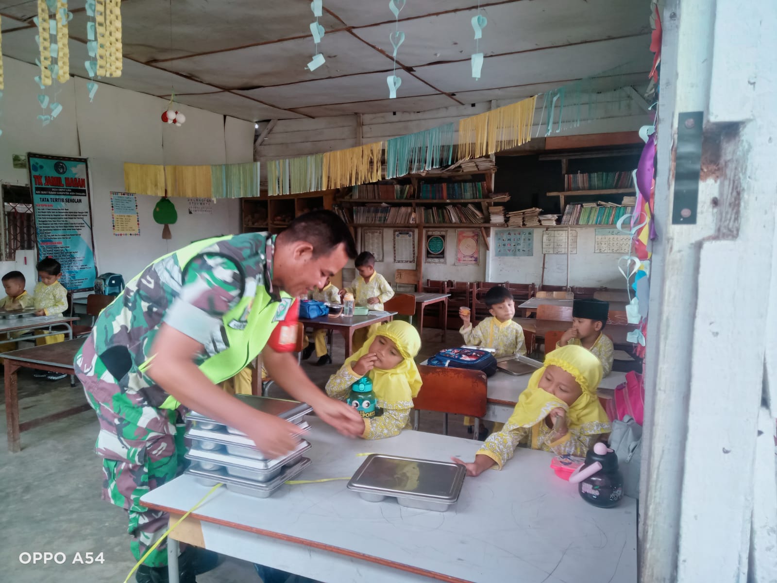 Kutacane Agaranews.com – Babinsa Koramil 0108-05/ Lawe Alas jajaran Kodim 0108/Agara melaksanakan pendampingan kegiatan Operasional makan bergizi Gratis (MBG)