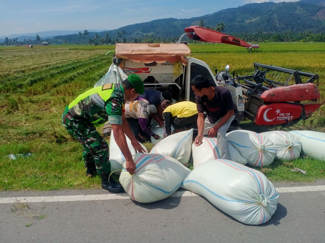 Kutacane Agaranews.com – Babinsa Koramil 0108-06/Babul Rahmah Serma Zaini Ahmad jajaran Kodim 0108/Agara membantu petani memanen padi milik Dika Sahputra di desa. Mutiara Damai Kecamatan. Babul Rahmah Kabupaten. Aceh Tenggara Selasa (25/11/2025).
