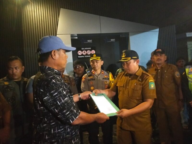 Langkat, AgaraNews.com // Tempat Hiburan Malam (THM) Blue Night Lounge dan Bar di Dusun Ban Rejo, Desa Emplasemen, Sei Bingai, Kabupaten Langkat, disegel Tim Gabungan pada Selasa malam, 25 November 2025. Penindakan dilakukan karena adanya dugaan praktik peredaran narkoba serta tidak adanya izin keramaian dan PBG.