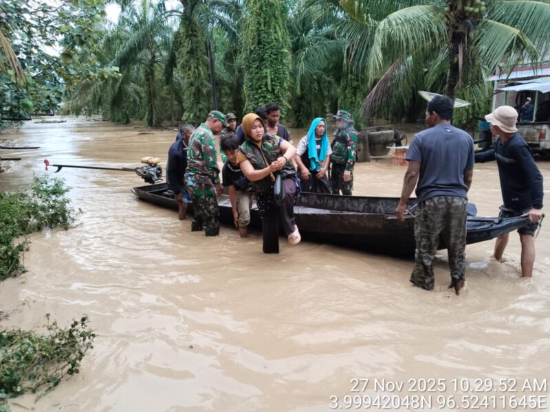Nagan Raya, Agaranews.com – Hujan yang terus menerus turun dalam beberapa hari terakhir, membuat banjir yang merendam 4 Desa di Kecamatan Darul Makmur tak kunjung surut, Kamis (27/11/2025)