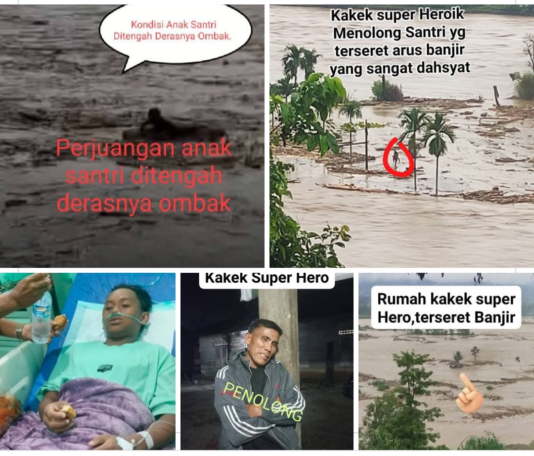 Dengan perjuangan yang sulit dijelaskan dengan kata-kata, kakek berhasil menjangkau sang santri. Ia memegang erat tubuh yang hampir hilang dibawa arus itu, menariknya sambil tetap menahan diri agar tidak ikut terseret. Saksi mata hanya mampu menahan napas, melihat detik-detik dramatis itu.