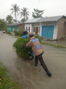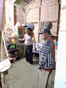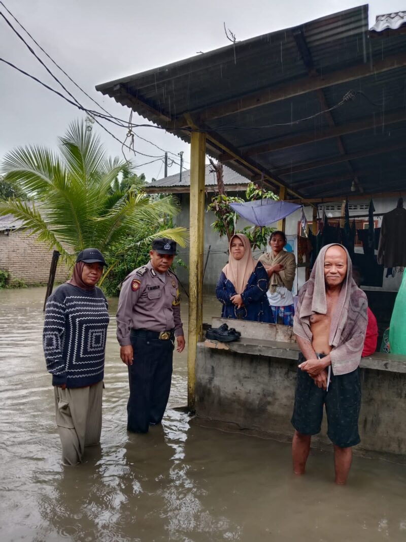 Dalam kesempatan tersebut, petugas Bhabinkamtibmas juga secara aktif memberikan himbauan kepada masyarakat agar selalu waspada terhadap kondisi banjir dan potensi bahaya di sekitar.