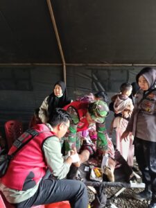 Babinsa Posramil Lawe Bulan Bantu Dirikan Posko Kesehatan Darurat di Lokasi Bencana