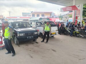 Pihak personel Satlantas Polres Tanah Karo juga berjaga di lokasi untuk menjaga situasi agar tetap aman dan kondusif.( Donal)