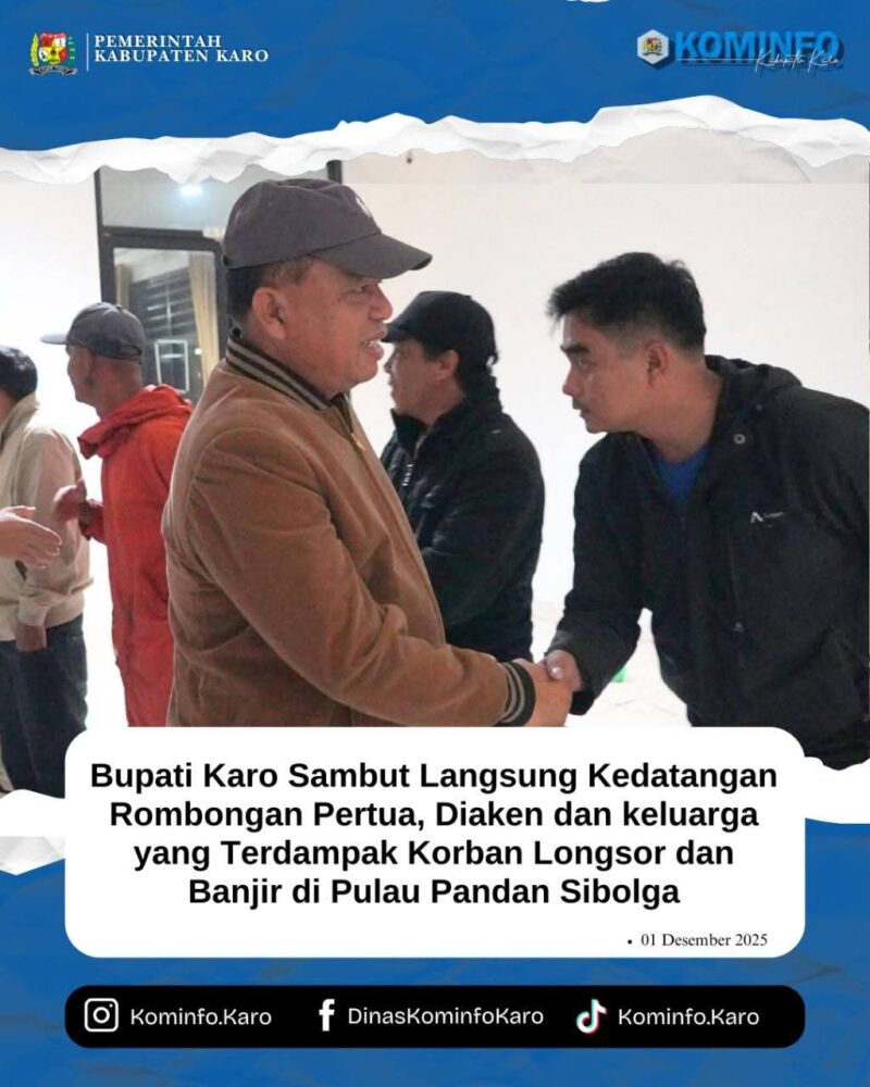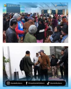 Tanah Karo, AgaraNews.com //.Bupati Karo Brigjen. Pol. (Purn.) DR. dr. Antonius Ginting. Sp.OG., M.Kes., menyambut kedatangan 24 orang rombongan Pertua Diaken GBKP Rg. Lingga Julu dan keluarga yang terdampak longsor dan banjir di Pandan Tapanuli Tengah di halaman Kantor Bupati Karo Jl. Letjen Jamin Ginting No. 17 Kabanjahe. Selasa (2/12/2025).
