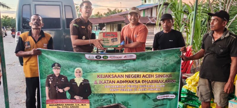 Aceh Singkil agaranews.com – Kejaksaan Negeri (Kejari) Aceh Singkil bersama Ikatan Adhyaksa Dharmakarini (IAD) terus menunjukkan kepedulian terhadap masyarakat terdampak banjir dengan menyalurkan ratusan paket sembako di berbagai desa yang terdampak sejak akhir November 2025.