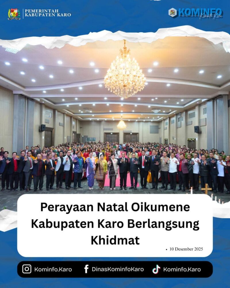 Tanah Karo – 10 Desember 2025, AgaraNews .com //.Perayaan Natal Oikumene 2025 Kabupaten Karo berlangsung khidmat di Hotel Sinabung Berastagi pada Rabu, 10 Desember 2025. Mengusung tema “Allah Hadir Untuk Menyelamatkan Keluarga” (Bdk. Matius 1: 21-24), perayaan ini menjadi momentum bagi umat kristiani untuk memperbaharui komitmen hidup dalam kasih Yesus Kristus.