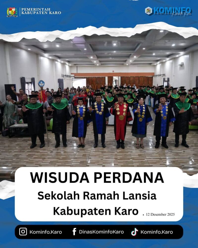 Tanah Karo – 13/12/2025, AgaraNews.com // Kabupaten Karo menorehkan sejarah baru dengan menyelenggarakan Wisuda Perdana bagi Para Lansia. Kegiatan ini bukan sekadar perayaan, namun merupakan penegasan bahwa para lansia (lanjut usia) adalah pilar kebijakan, penjaga nilai budaya, dan pemberi inspirasi bagi generasi muda, sejalan dengan Visi Kabupaten Karo: “Karo Beriman, Berbudaya, Modern, dan Unggul Menuju Kabupaten Karo Sejahtera Berkelanjutan.”