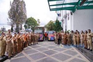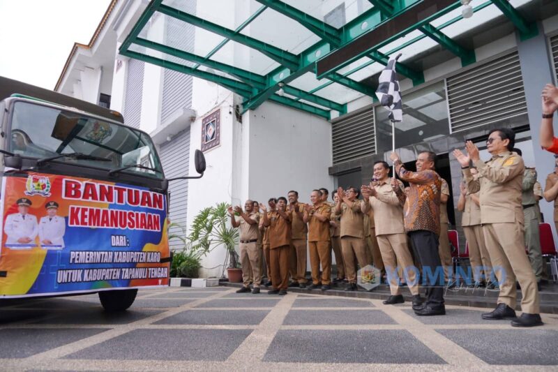 Tanah Karo, AgaraNews. Com // Pemerintah Kabupaten Karo menyalurkan bantuan kemanusiaan kepada para korban bencana banjir dan longsor yang terjadi di Kabupaten Langkat, Kota Sibolga, dan Kabupaten Tapanuli Tengah. Bantuan tersebut dilepas langsung oleh Bupati Karo, Brigjen Pol (Purn) Dr. dr. Antonius Ginting, Sp.OG., M.Kes., didampingi Sekretaris Daerah Kabupaten Karo, Gelora Kurnia Putra Ginting, S.STP., MM, serta para Kepala Perangkat Daerah di lingkungan Pemerintah Kabupaten Karo dari Halaman Kantor Bupati Karo, Senin (15/12/2025).