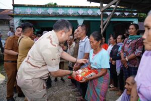 Pakpak Bharat, Agara News.com // Bupati Pakpak Bharat Franc Bernhard Tumanggor bersama istri, Ny. Juniatry Franc Bernhard Tumanggor membagikan paket bantuan bencana alam di desa simerpara dan Majanggut II.