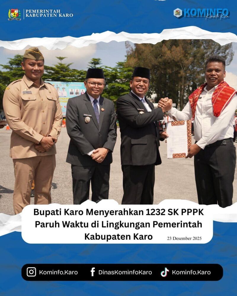 Tanah Karo, AgaraNews.com // Bupati Karo, Brigjen Pol (Purn) Dr. dr. Antonius Ginting, Sp.OG., M.Kes., Menyerahkan 1232 SK PPPK Paruh Waktu di Lingkungan Pemerintah Kabupaten Karo di Halaman Kantor Bupati, pada Selasa (23/12).