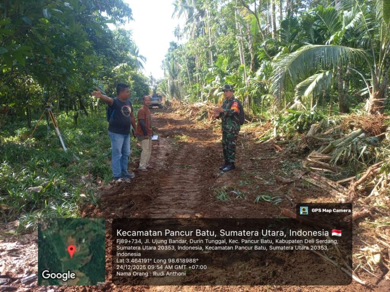 Salah seorang Babinsa Koramil 0201-14/PB yakni Peltu Rudi Anthoni pada siang hari ini (24-12-2025) tampak mendampingi Kadus 2 Desa Pertampilan Kec Pancur Batu untuk melihat langsung proses Pembangunan Jalan Alternatif yang sedang di laksanakan di wilayah Dusun 2 Desa Pertampilan. Kegiatan ini di lakukan Peltu Rudi Anthoni guna mengetahui sekaligus memonitor langsung kegiatan Pembangunan sarana umum Jalan Alternatif sepanjang 395 meter dan akan menghubungkan wilayah Dusun 2 Desa Pertampilan dengan Dusun 7 Desa Namo Bintang Kec Pancur Batu, yang di kerjakan pada ahir Tahun 2025 ini oleh Dinas PUPR dan Perkim Kab Deli Serdang.