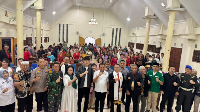 Sumedang, AgaraNews .com // Dalam rangka memastikan perayaan Natal 2025 berjalan aman dan kondusif, Forum Koordinasi Pimpinan Daerah (Forkopimda) Kabupaten Sumedang melaksanakan kunjungan dan peninjauan langsung pengamanan Kebaktian Malam Natal di Gereja Kristen Pasundan (GKP), Jalan Pangeran Geusan Ulun No. 104, Kelurahan Regol Wetan, Kecamatan Sumedang Selatan, Rabu malam (24/12/2025).