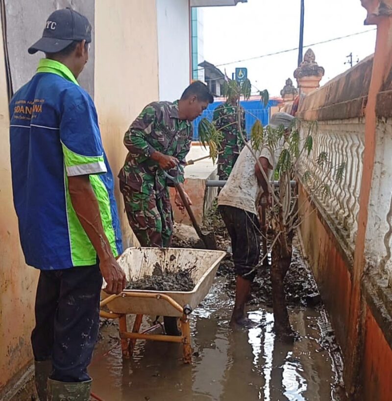 Kegiatan gotong royong ini dilaksanakan sebagai bentuk kepedulian TNI terhadap dunia pendidikan sekaligus membantu percepatan pemulihan lingkungan sekolah yang terdampak banjir.