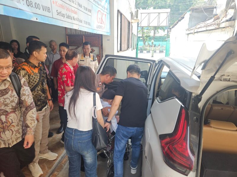 Aiptu Dwi Herianto Kapolsubsektor Pademangan Barat membantu Lansia mulai dari menurunkan dan menaikan dari mobil yang membawanya, kemudian menuntunnya hingga ke lokasi Kebaktian dan selesai kebaktian.