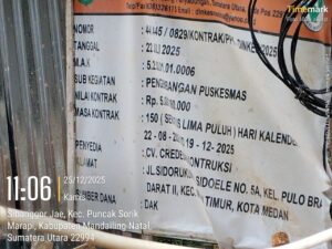 Mandailing Natal, AgaraNews .com // Proyek pembangunan Puskesmas Sibanggor Jae kembali menjadi perhatian publik. Indikasi keterlambatan penyelesaian pekerjaan disertai dugaan ketidaksesuaian alat kerja dan pengabaian keselamatan tenaga kerja mencuat dari hasil pantauan lapangan.