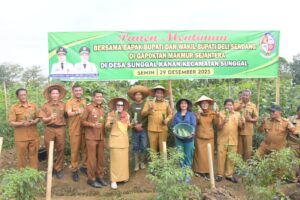 “Deli Serdang sehat itu artinya petaninya sejahtera. Sejahtera itu indikatornya jelas, memiliki sumber produksi dan hasil produksinya tinggi,” ujar Wakil Bupati (Wabup) Deli Serdang, Lom Lom Suwondo SS, pada panen timun bersama Gabungan Kelompok Tani (Gapoktan) Makmur Sejahtera, Desa Sunggal Kanan, Kecamatan Sunggal, Senin (29/12/2025).