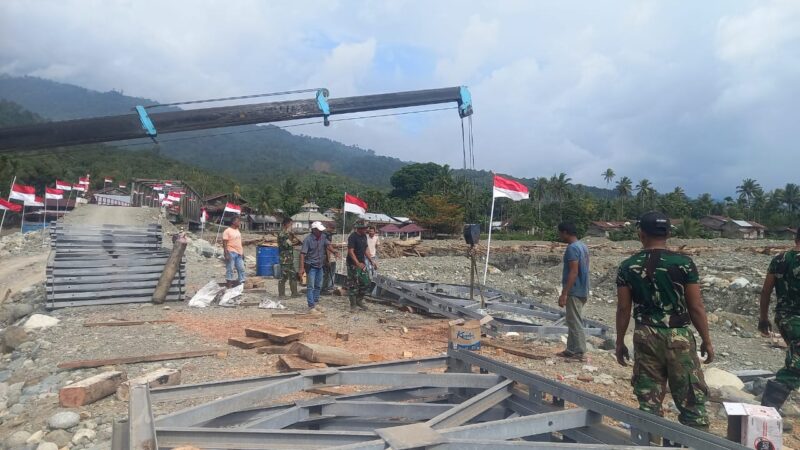 Nagan Raya, Agaranews.com – Prajurit TNI Kodim 0116/Nagan Raya bersama Yonif TP 856/SBS bantu Satuan Zeni Kodam Iskandar Muda (Zidam IM) terus membantu mempercepat pemasangan Jembatan Bailey di Kecamatan Beutong Ateuh Benggalang Kabupaten Nagan Raya terus kebut pembuatan Jembatan Darurat.selasa (30/12/2025)