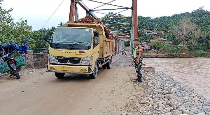 Aceh Tenggara Agaranews.com – Babinsa Koramil 0108-01/Lawe Sigala melaksanakan pendampingan perbaikan jembatan opprit yang putus akibat banjir bandang di desa