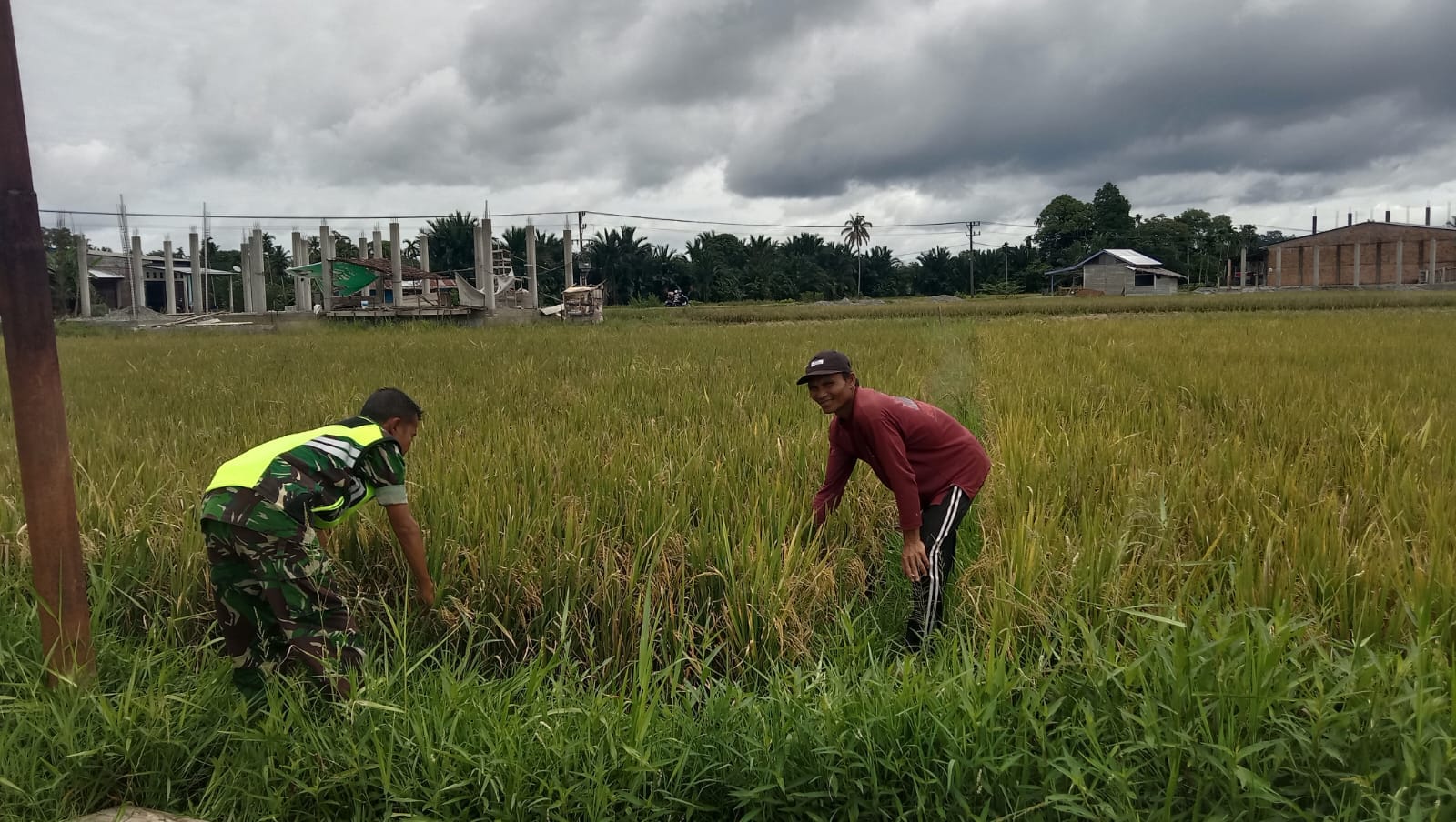 Memastikan langsung perkembangan pertumbuhan padi milik petani yang sebelumnya pada Awal musim tanam Babinsa senantiasa mendampingi hingga dengan turun ke sawah membantu proses penanaman padi, Kopda Said Abdul Rozak memantau padi milik Bapak Sukri yang tumbuh dengan sangat subur dengan kecukupan pupuk dan air di sawah miliknya.