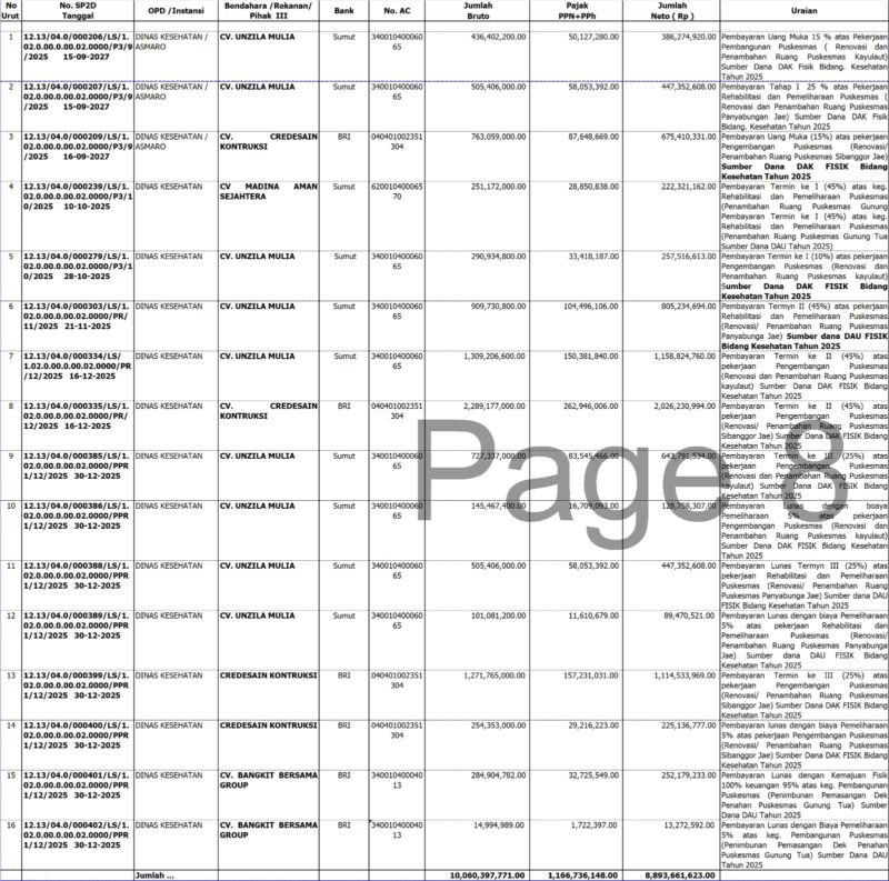 Adapun tiga proyek yang menjadi sorotan tajam tersebut meliputi pembangunan Puskesmas Sibanggor Jae, Puskesmas Kayu Laut, dan Puskesmas Panyabungan Jae.