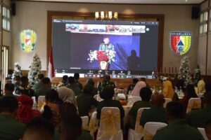 Melalui sambungan video conference, Kasad Jenderal TNI Maruli Simanjuntak menyampaikan arahan agar seluruh prajurit senantiasa menjaga profesionalisme yang selaras dengan kekuatan mental dan spiritual.