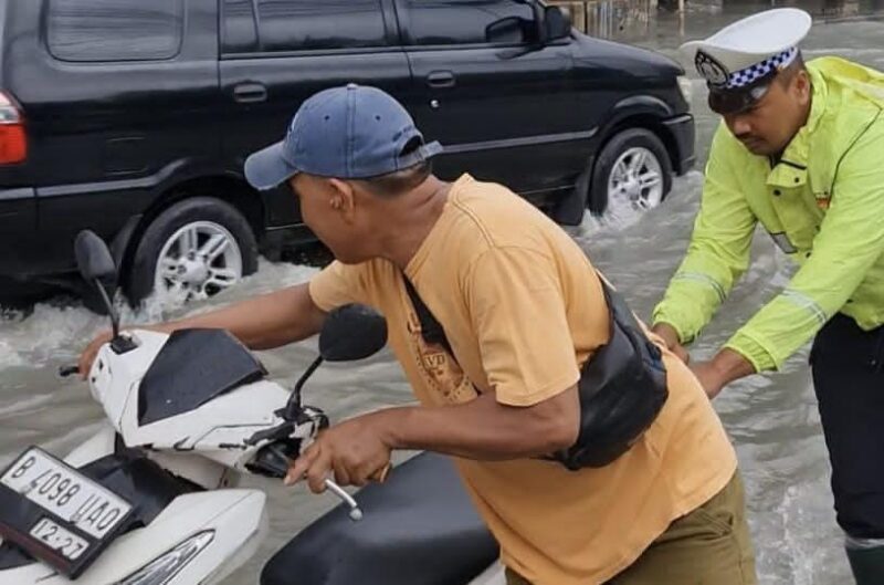 Jakarta, AgaraNews.com// Polsek Kawasan Muara Baru, Polres Pelabuhan Tanjung Priok, Polda Metro Jaya melaksanakan pelayanan serta memberikan bantuan kepada masyarakat yang mengalami kendala saat melintasi genangan air rob dan hujan di wilayah Pelabuhan Muara Baru, Selasa (13/01/2026).