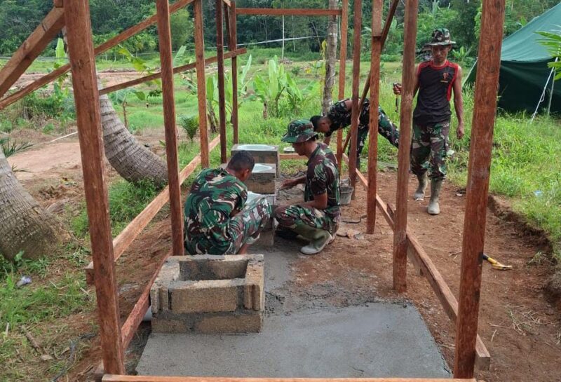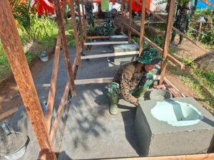 Adapun tahapan pekerjaan meliputi penentuan titik MCK, penutupan lubang, pemasangan pintu, plester bagian dalam, pemasangan dinding seng, hingga pemasangan pipa saluran septik. Seluruh proses dilaksanakan secara bertahap, dan saat ini pembangunan telah mencapai progres 100 persen serta sudah siap digunakan oleh personel Satgas.