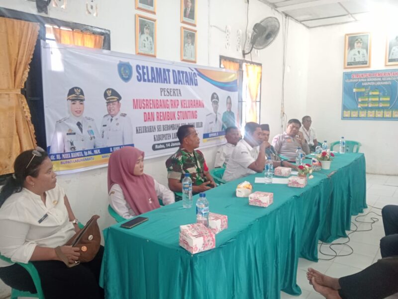 Labuhanbatu – AgaraNews.com// Babinsa Kelurahan Sei Berombang Koramil 03/SB Kodim 0209/Labuhanbatu Serma Suritno menghadiri kegiatan Musyawarah Perencanaan Pembangunan (Musrenbang) dan Rembuk Stunting Tahun 2026 yang digelar di Aula Kelurahan Sei Berombang, Kecamatan Panai Hilir, Kabupaten Labuhanbatu, Rabu (14/01/2026).Kegiatan tersebut dihadiri oleh Lurah Sei Berombang Hapipuddin, S.E., Camat Panai Hilir yang diwakili Darwis, Bhabinkamtibmas Polsek Panai Hilir Bripka Nawi Ritonga, Kepala Puskesmas Sei Berombang Lely Suryadarma, S.K.M., para Kepala Lingkungan, tokoh masyarakat, tokoh agama, tokoh pemuda, serta tamu undangan lainnya.Kehadiran Babinsa dalam kegiatan ini sebagai bentuk dukungan terhadap jalannya musyawarah, sekaligus untuk menyerap aspirasi masyarakat terkait perencanaan pembangunan serta upaya percepatan penanganan stunting di wilayah Kelurahan Sei Berombang.