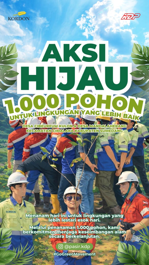 Sumedang, AgaraNews.com // PT Kordon Putra Sinergi menggelar kegiatan Aksi Hijau 1.000 Pohon di Desa Cibeureum Kulon dan Desa Mandalaherang, Kecamatan Cimalaka, Kabupaten Sumedang, Rabu (14/1). Kegiatan ini merupakan bagian dari rangkaian peringatan Bulan Keselamatan dan Kesehatan Kerja (K3) Nasional 12 Januari 2026 – 12 Februari 2026, khususnya pada sektor pertambangan.
