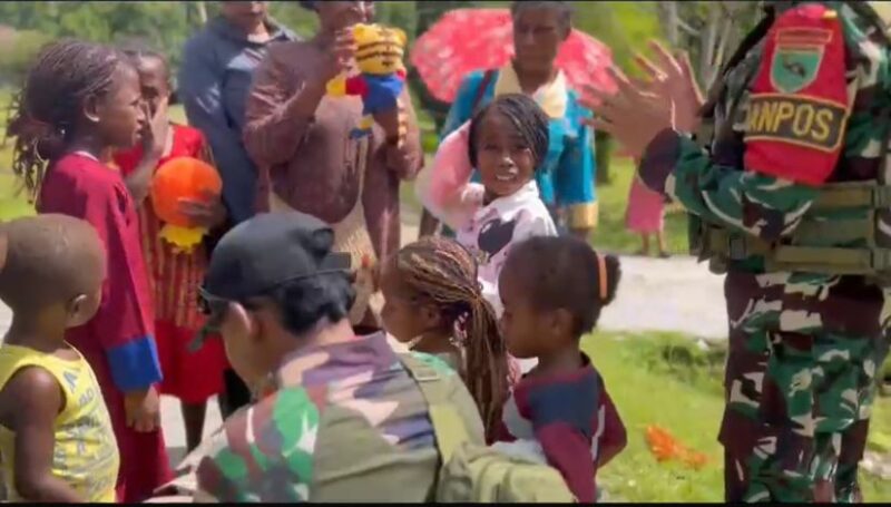 Maybrat, AgaraNews .com // Satgas Pamtas RI-PNG Kewilayahan Yonif 763/SBA Pos Afkrem bersama masyarakat melaksanakan kegiatan Pembinaan Teritorial dengan membagikan buku bergambar untuk anak-anak warga di Kampung Afkrem, Kabupaten Maybrat, Provinsi Papua Barat.