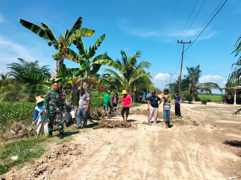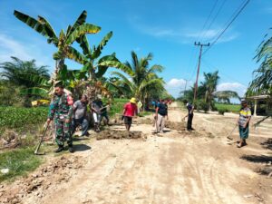 Gotong royong tersebut bertujuan memperbaiki kondisi jalan desa agar lebih mudah dilalui masyarakat serta menciptakan lingkungan yang bersih, aman, dan kondusif. Kehadiran Babinsa di tengah warga berperan sebagai penggerak kebersamaan sekaligus mendorong semangat kepedulian bersama terhadap fasilitas umum yang digunakan sehari-hari.