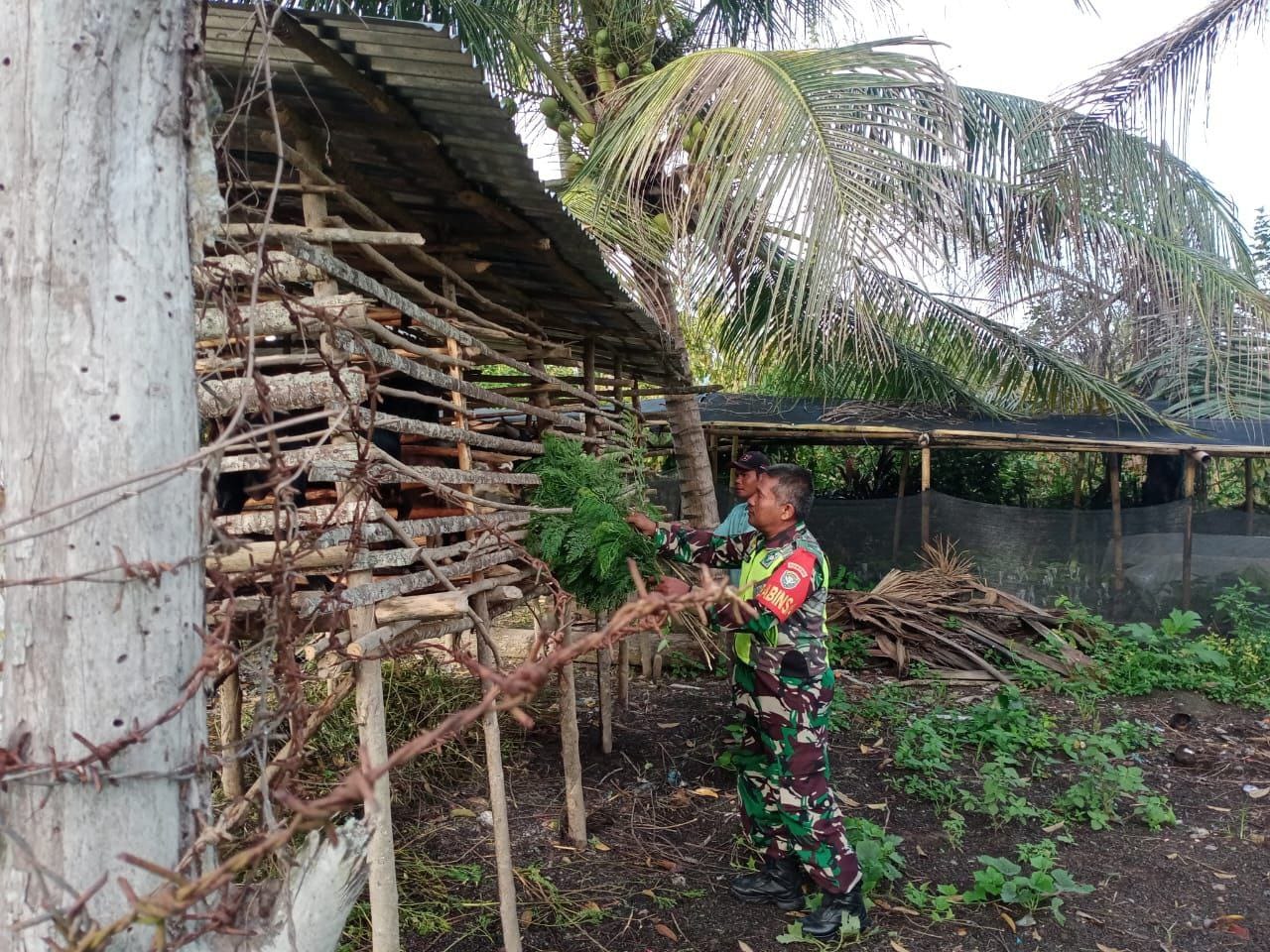 Jaga Kesehatan Ternak Babinsa Sambangi Peternak Kambing Etawa