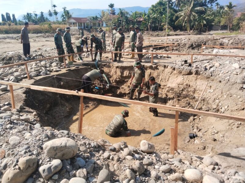 Kutacane Agaranews.com – Babinsa Posramil Darul Hasanah melaksanakan karya bhakti pembangunan pondasi jembatan gantung di desa natam kecamatan Darul Hasanah Kabupaten Aceh Tenggara, Sabtu (17/01/2026).